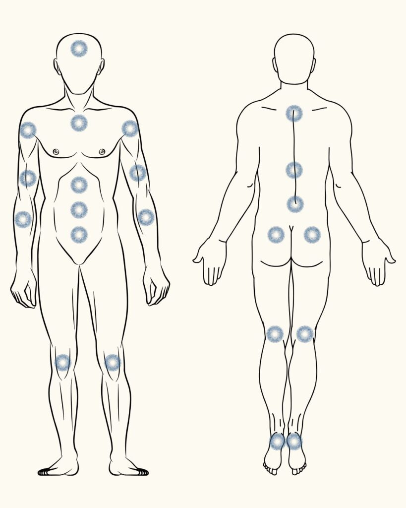 Nanoplastry LifeWave umieszcza się w wybranych miejscach na ciele – to specjalne punkty znane w medycynie wschodniej jako punkty akupresurowe. Ich stymulacja uruchamia naturalne procesy samoregeneracji organizmu, bez potrzeby stosowania igieł, zabiegów czy innych inwazyjnych metod.